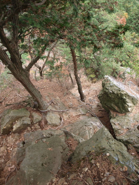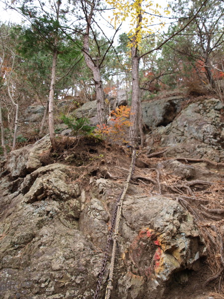 最初の鎖場は巻き道がありますが、そちらもロープ&鎖があります。