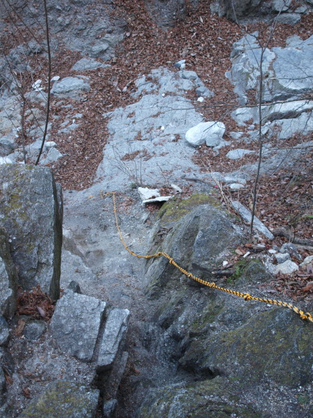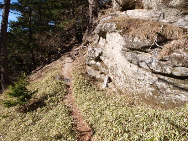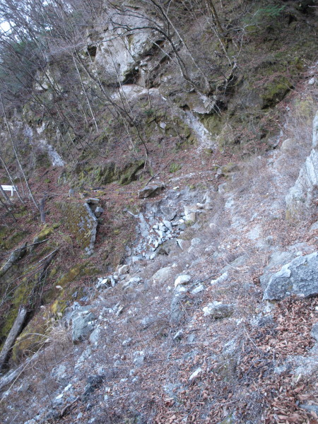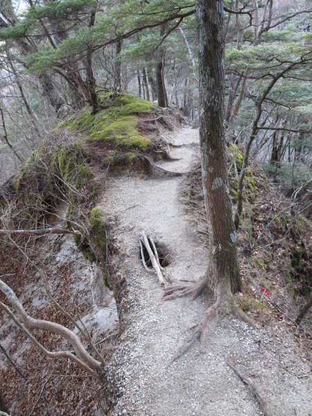 木があるとはいえ、滑落したらタダじゃ済みそうもない斜度です。