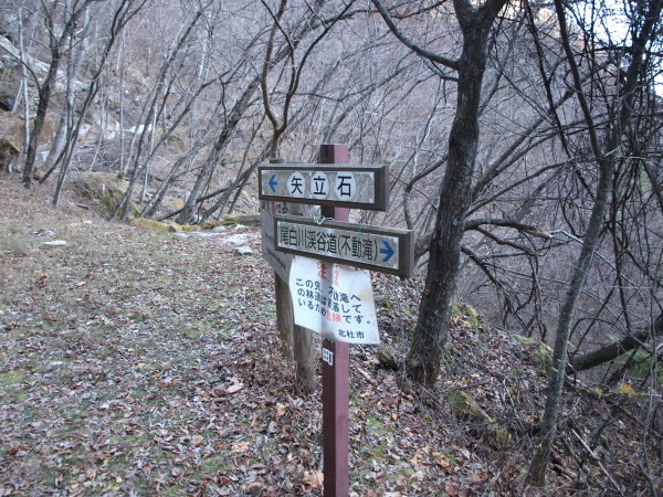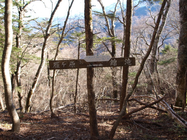 右はトラバース道で雁ヶ原と錦滝の間に出ます。