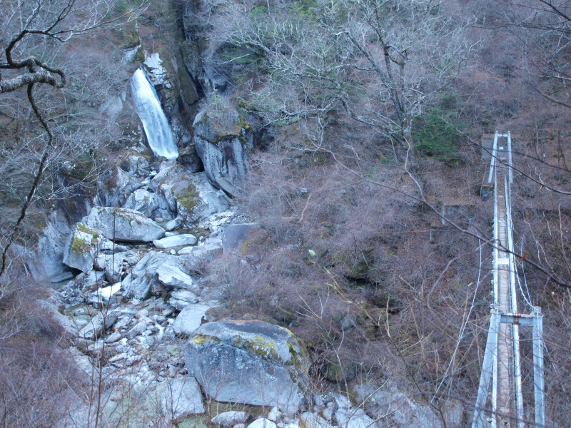 橋の上から見た不動滝。