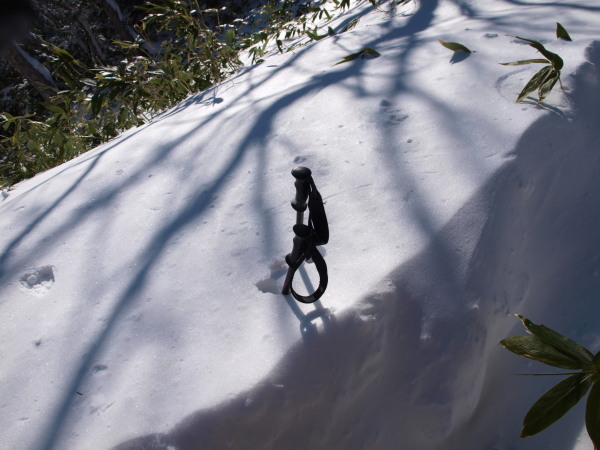 115〜120cmに調節してあるストックです。積雪は1m以上ありそうです。