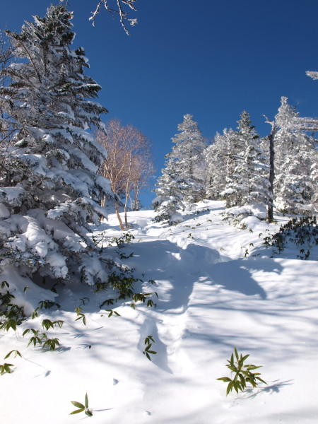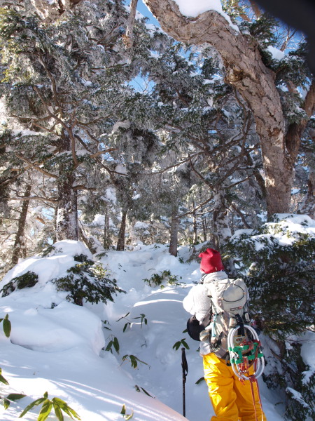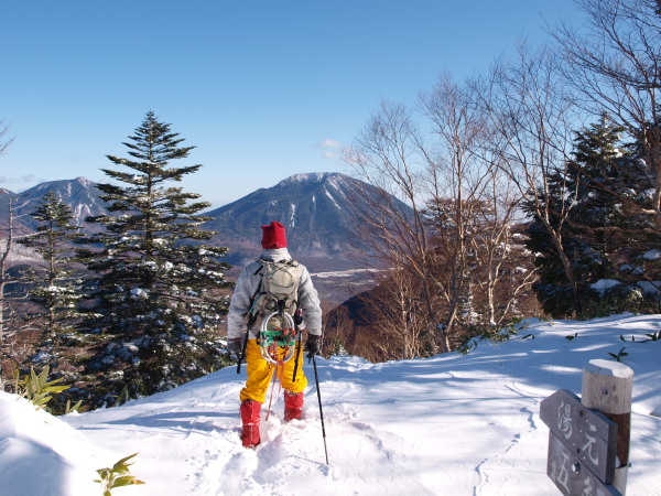 やっぱり雪山は寒い!でも青空の下、よっしーさんと楽しく歩きました。