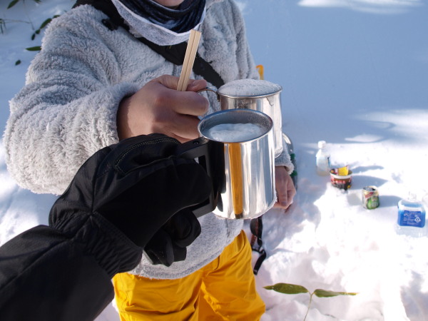 ー10度以下の場所で長居は出来ないのでカップラーメンです。