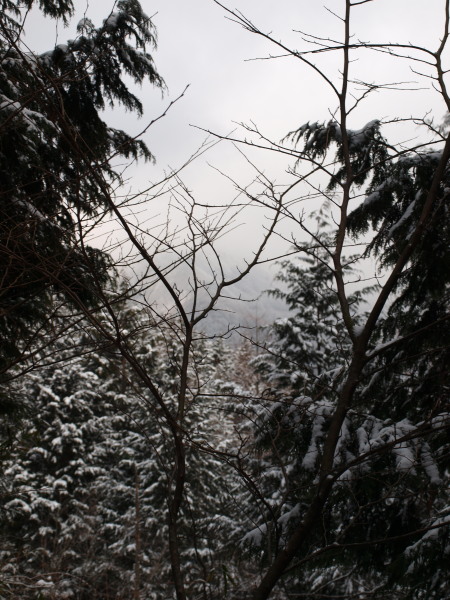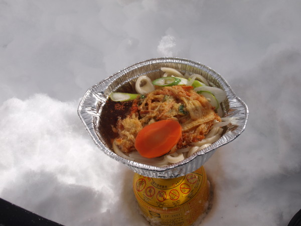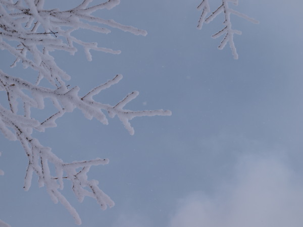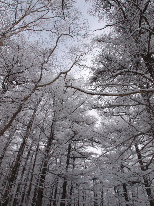 風花だった雪も少し強くなって来たので樹林帯で10分休憩。
