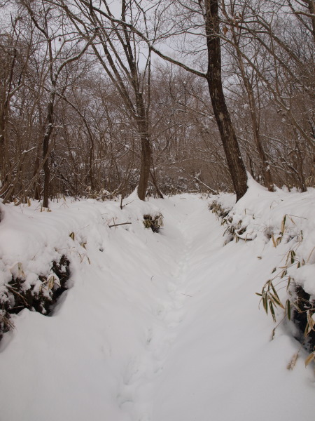 途中で左に曲がりますが、積雪が多いと曲がる地点が判りづらいです。