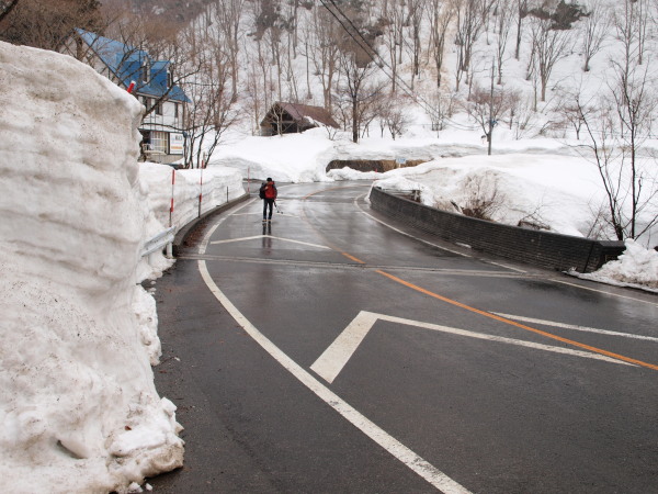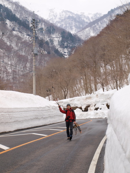 道路は雪壁になっていましたよ。