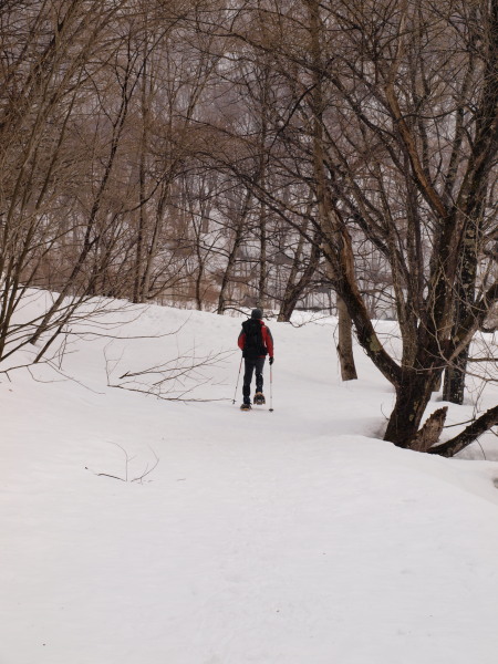 スノーシューであっちへプラプラ、こっちへプラプラ。