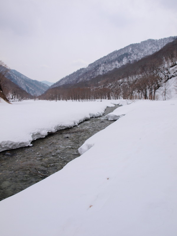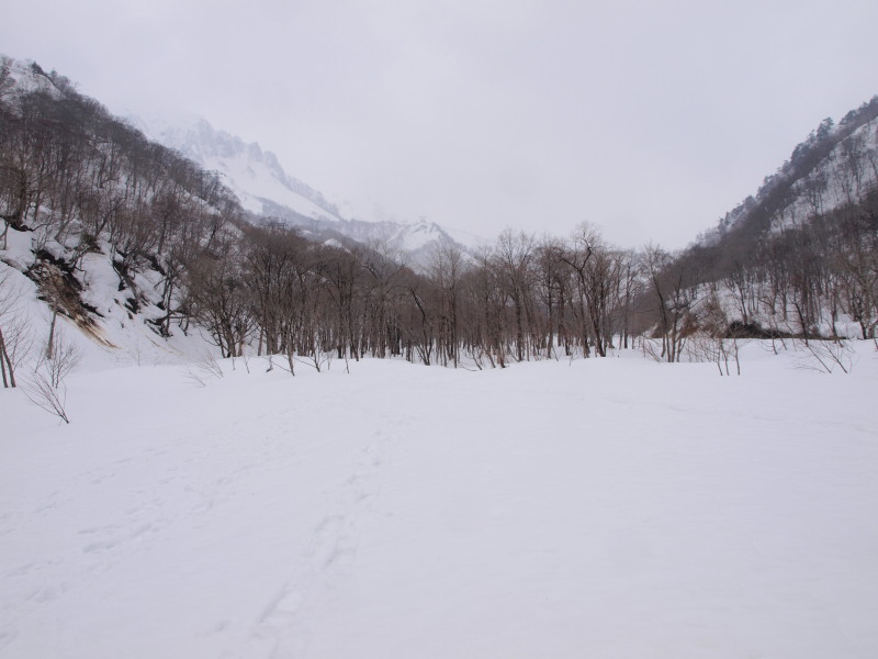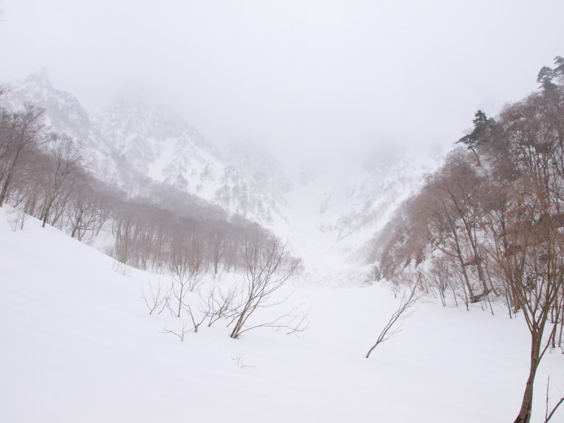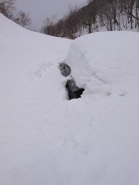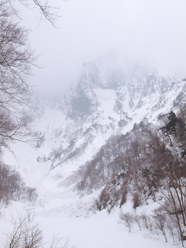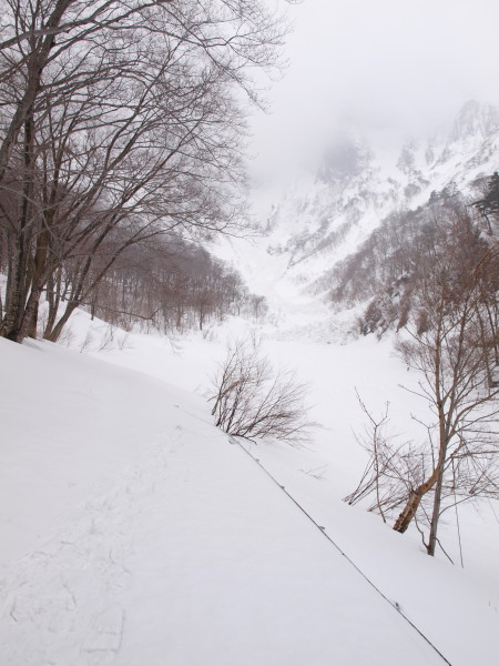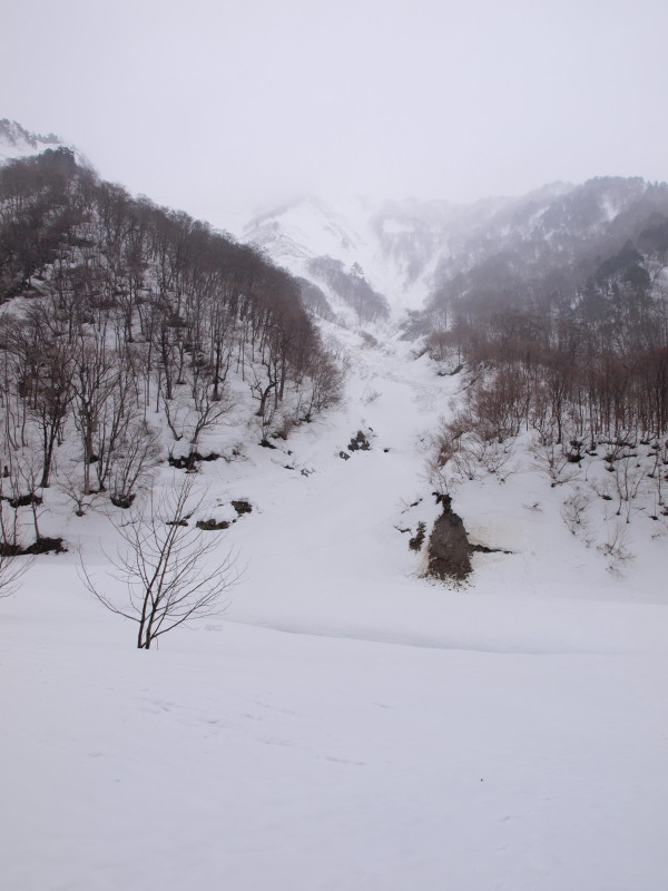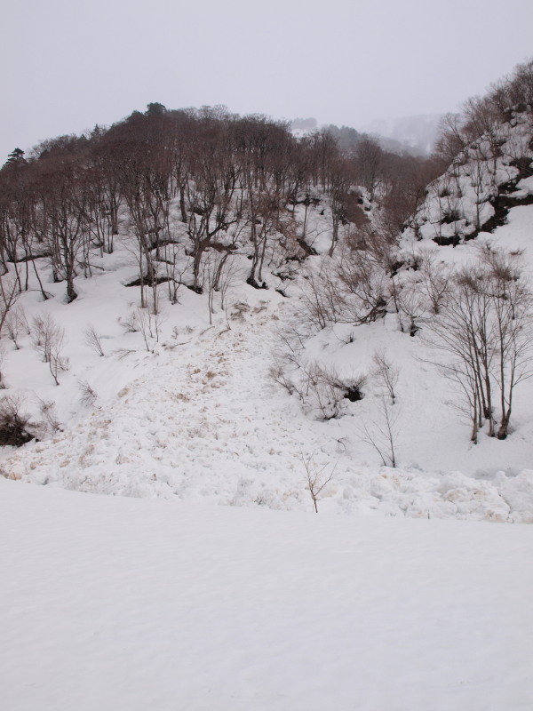 ここまでの道のりでも沢筋はほとんど雪崩れていました。