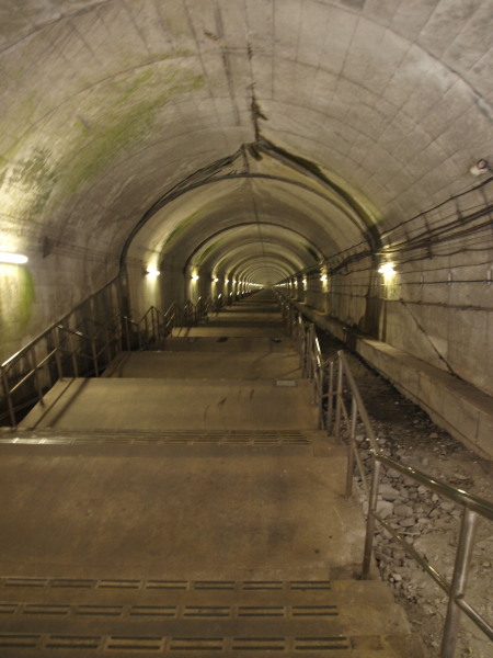 土合駅下りホームへ下りる階段。