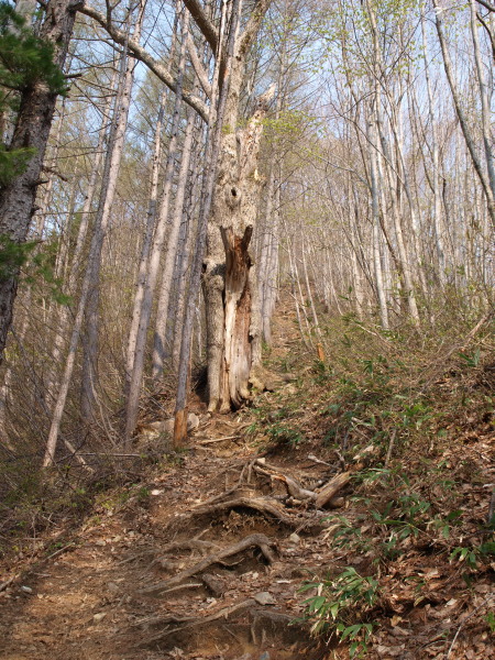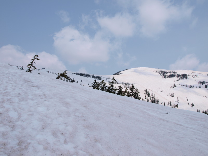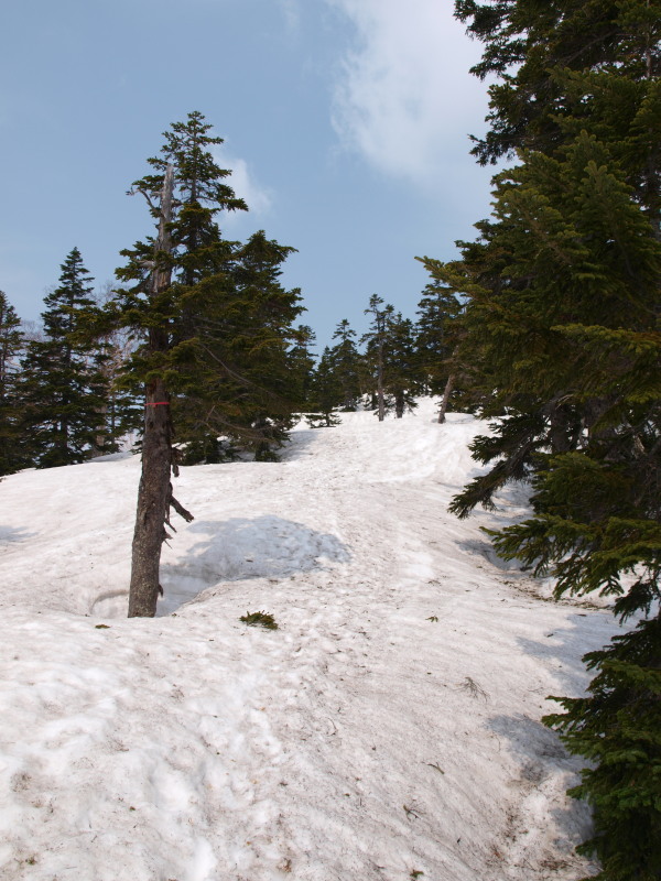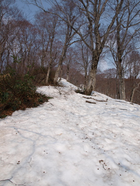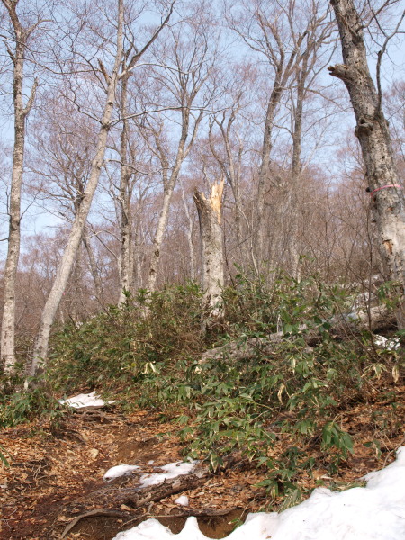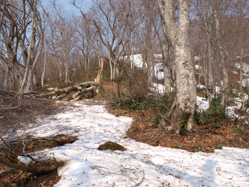 8:42 残雪が多くなるものの雪が繋がっていないのでまだ夏道。