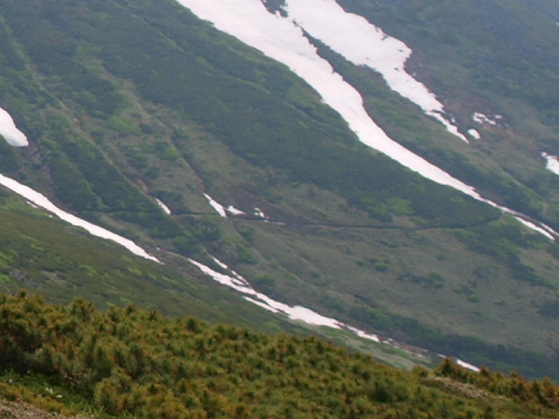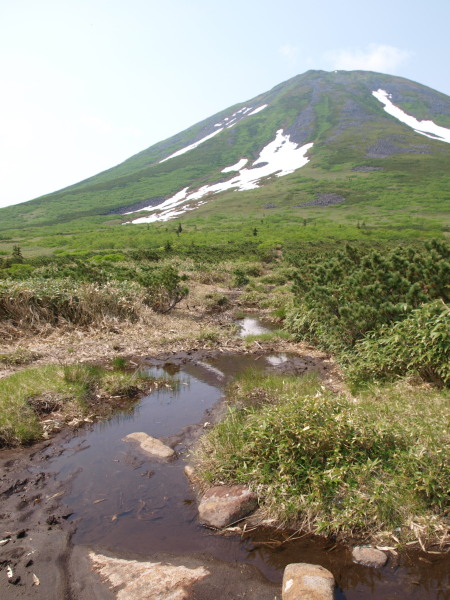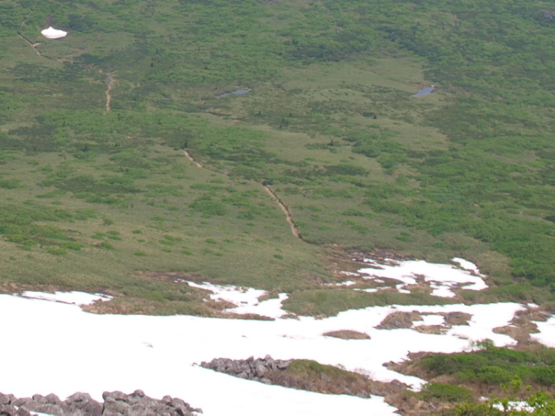 他の水場は上で紹介した小屋から白金温泉への登山道の雪渓。