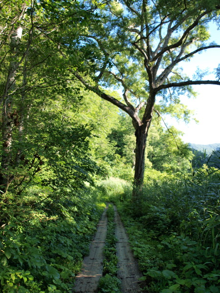 さすがは豪雪地帯!木が登山道に覆いかぶさっています。