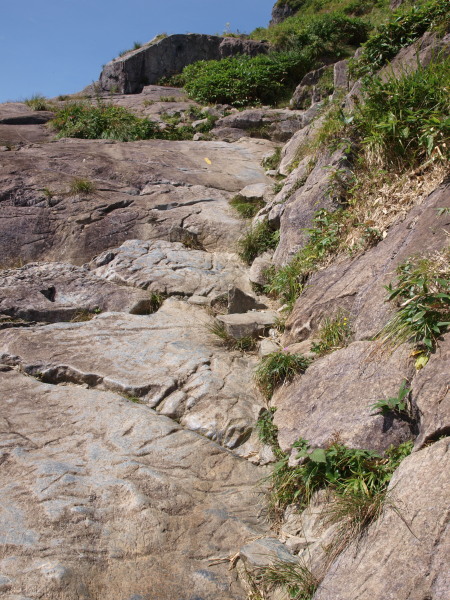 岩がツルツルに磨かれています。足場を選んで歩きます。