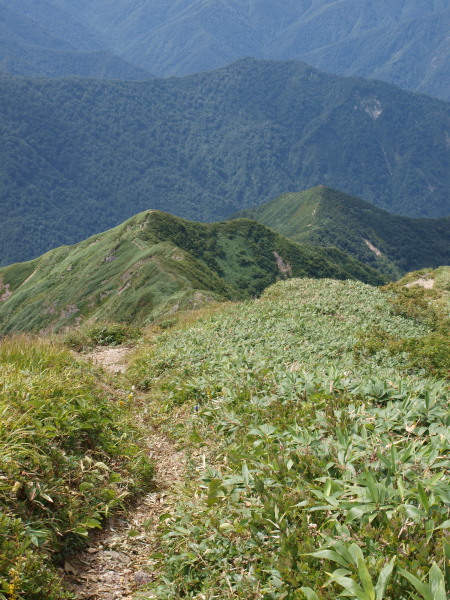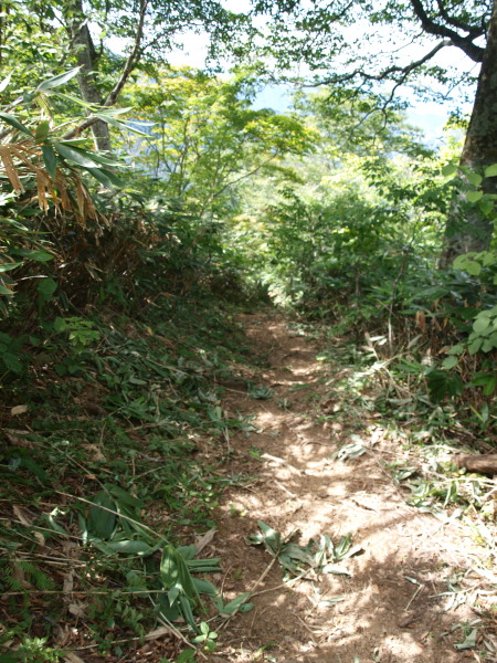 快適そうな下りの道ですが笹の刈り払い後だったので
