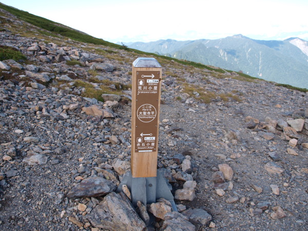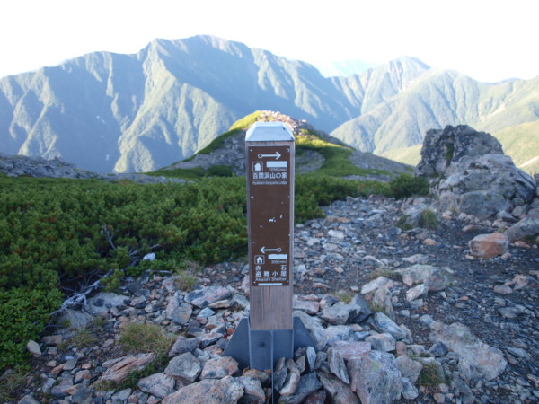 7:35 少しのアップダウンで山頂と非難小屋の分岐。