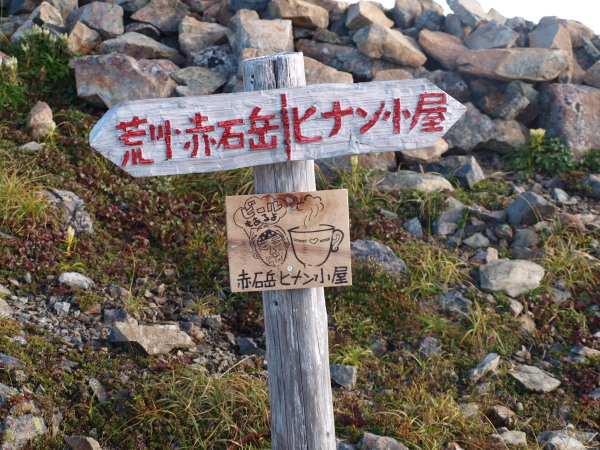 ここに赤石岳避難小屋まで30分と書かれています。