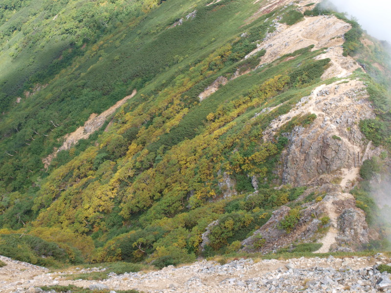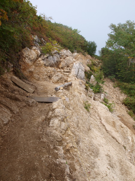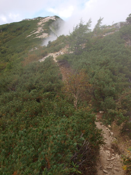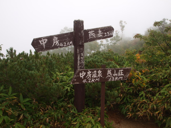 燕山荘からの下り道に入ったらガスの世界へ突入。