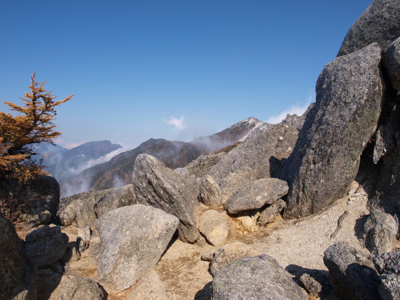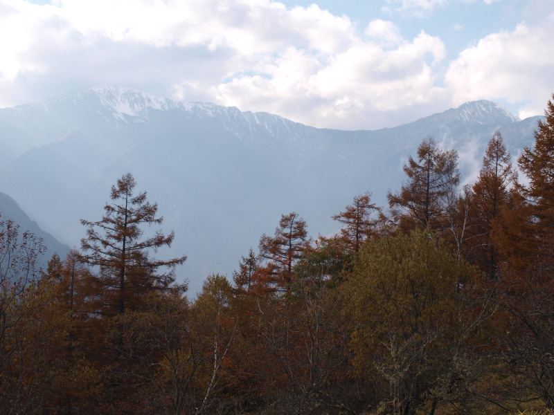 それでも時折、木々の間から間ノ岳の山頂部分が見えました。