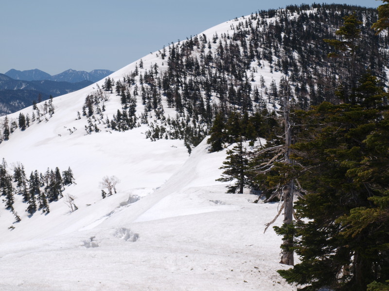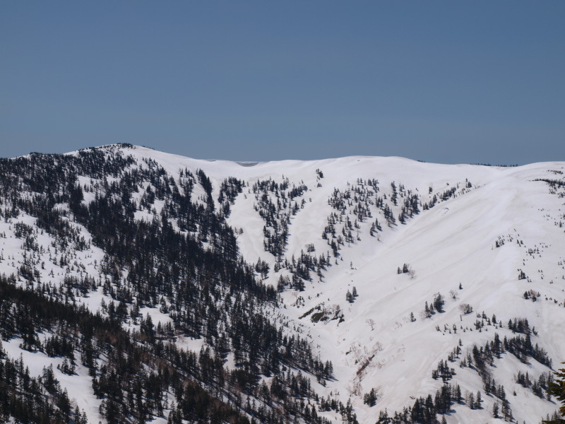 そこから延びる稜線は中門岳へ続くもの。