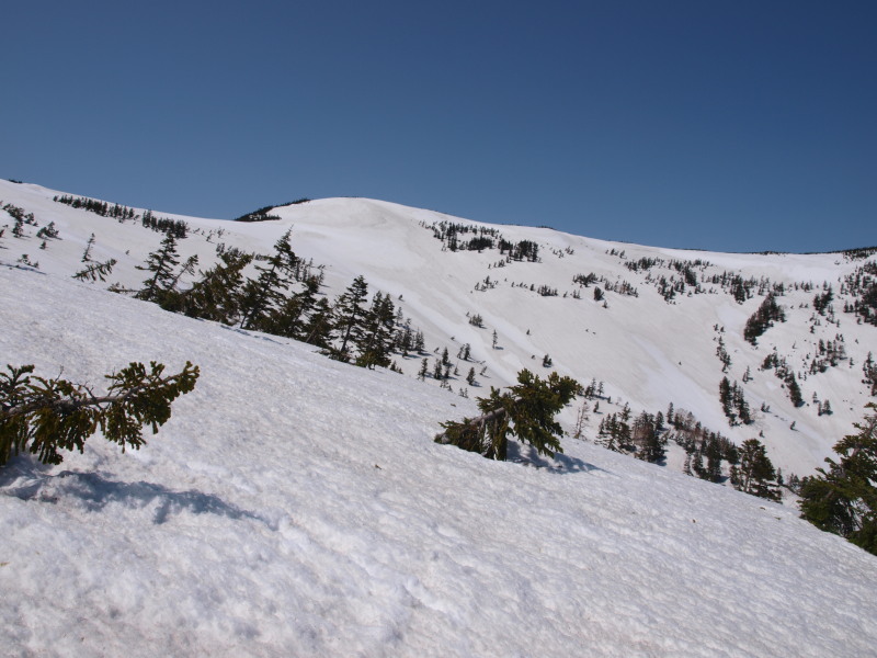 12:13 だんだんと近づく会津駒ヶ岳。(右のピーク)