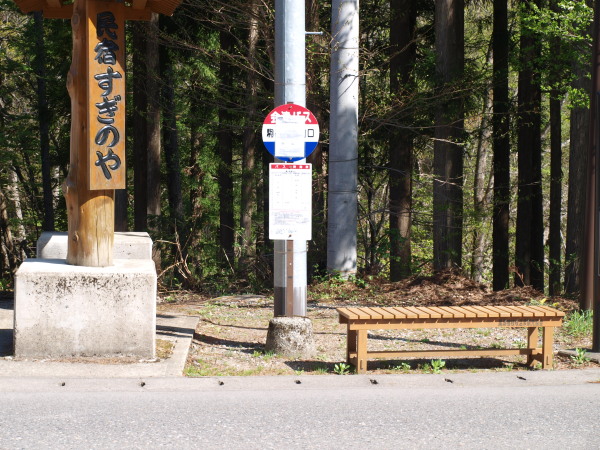 あずき温泉、会津田島方面はこのバス停の反対側で待ちます。