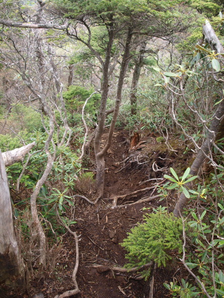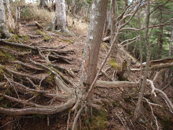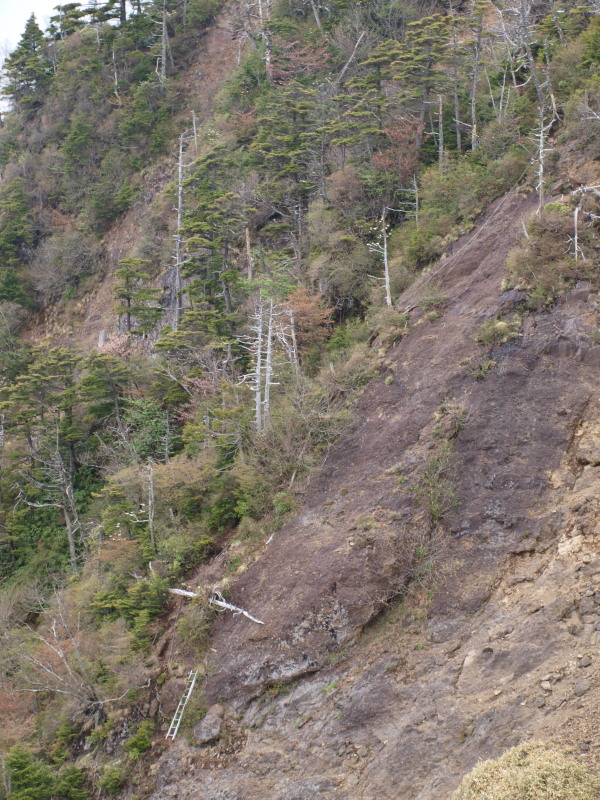 滑りやすくて難儀しました。帰りの登り返しも辛そう・・・