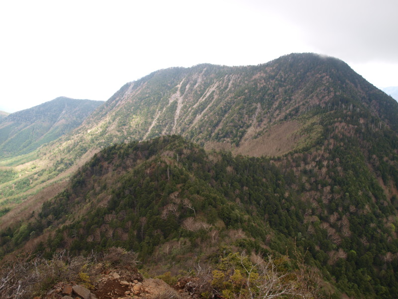 鋸山から見る皇海山。普段、遠くから見ている三角錐ではありませんでした。