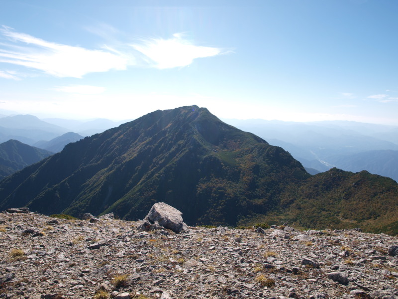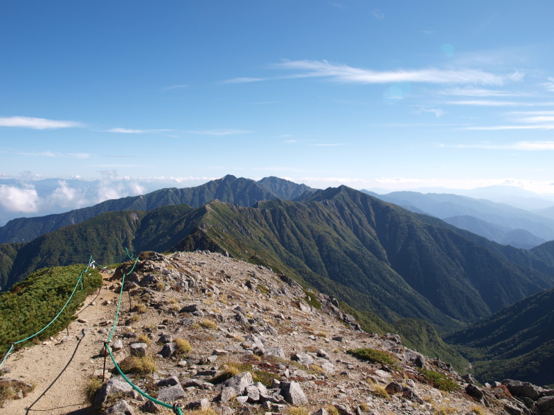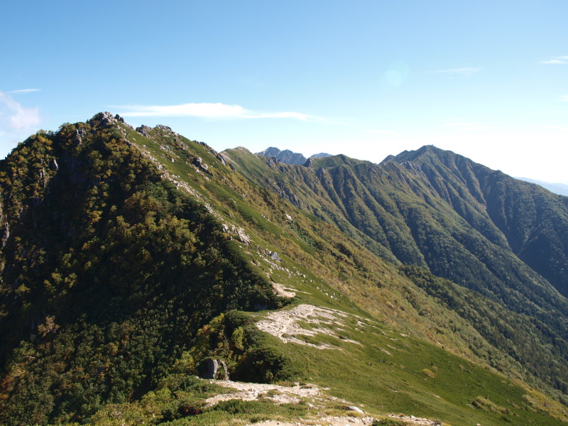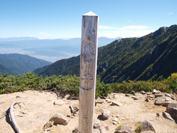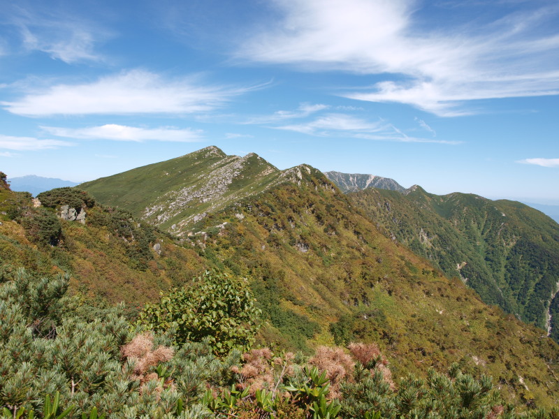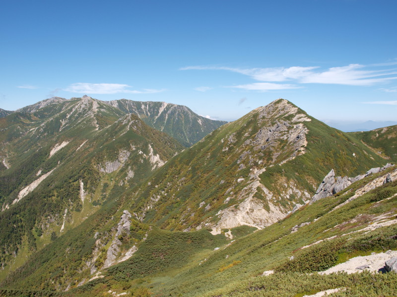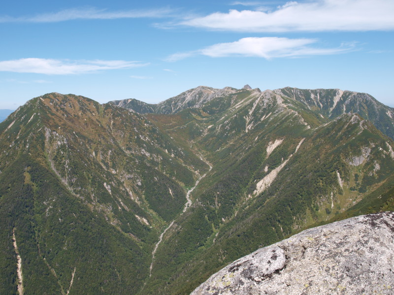 振り返れば空木岳、南駒ヶ岳、越百山。