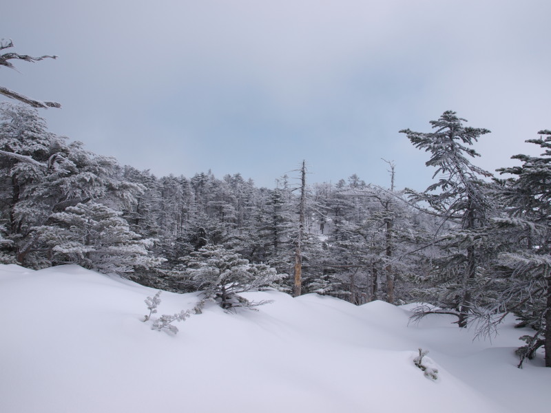 山頂の展望も大好きですが、坪庭からスノーシューで下るのがここのメインの様な気がします。