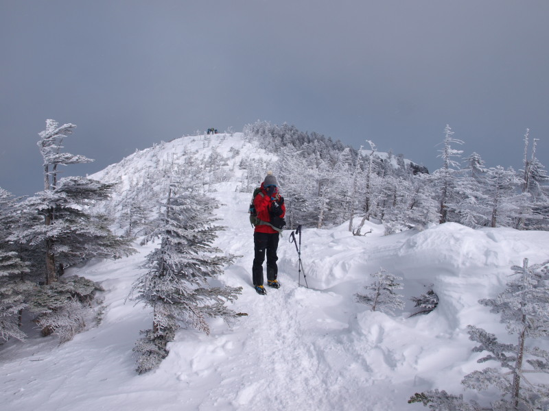 ここでスノーシューからアイゼンに履き替えて山頂を目指します。