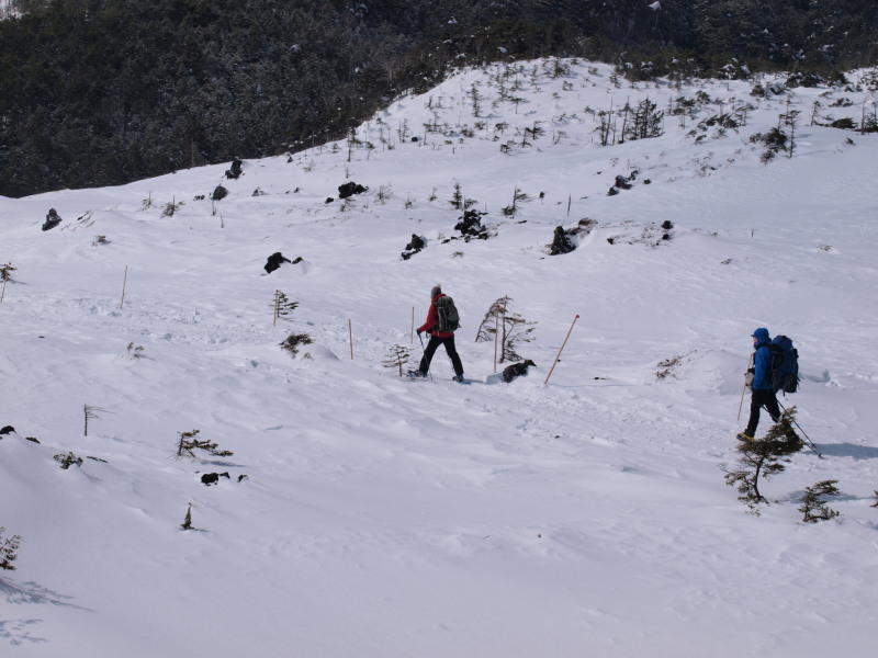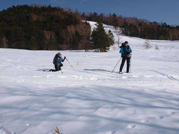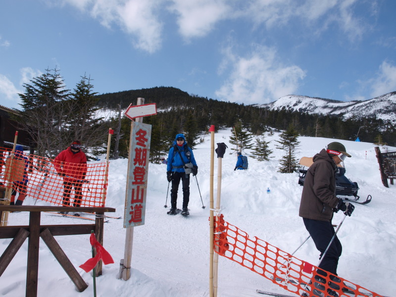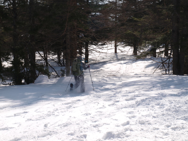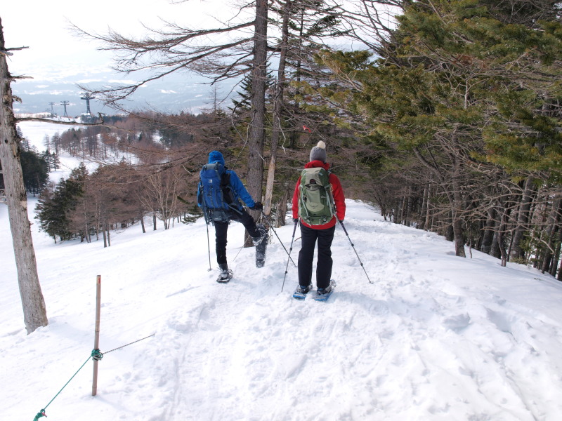 登山道は踏み固められていてスノーシューの出番は無い状態だったけど
