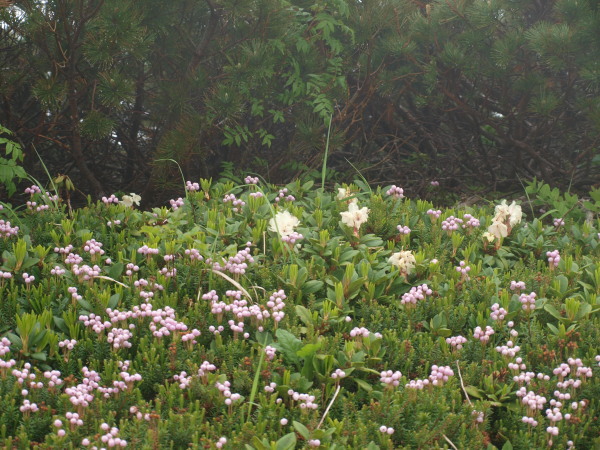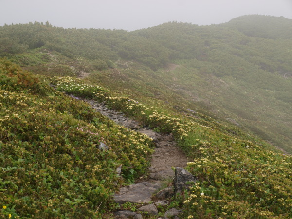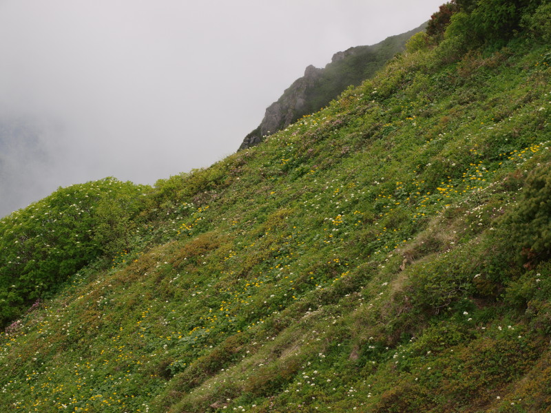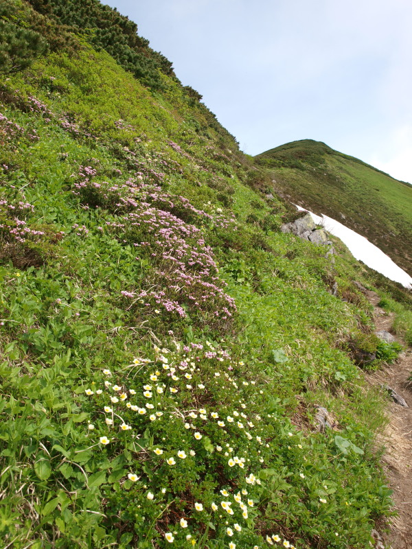 斜面にはチングルマやツガザクラの花が目を楽しませてくれます。