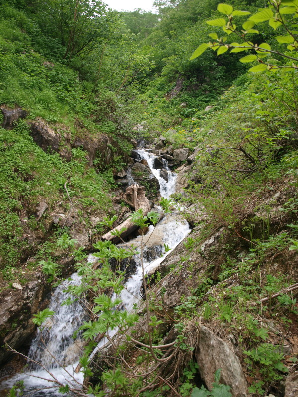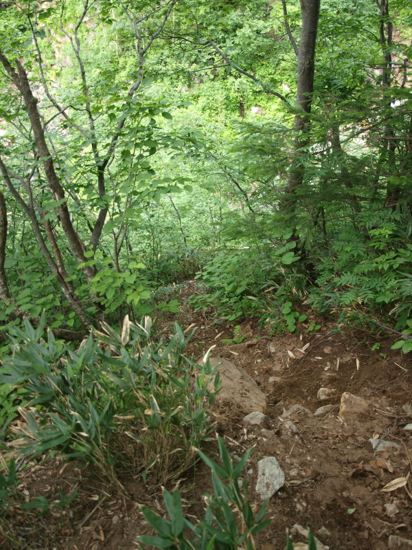 ここから滑りやすい沢沿いの下りなので慎重に下ります。
