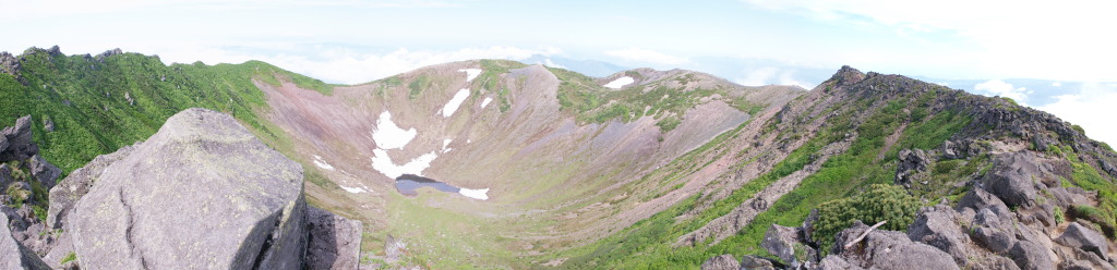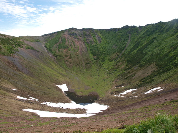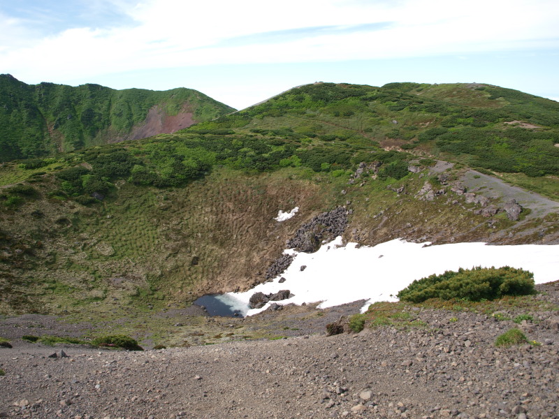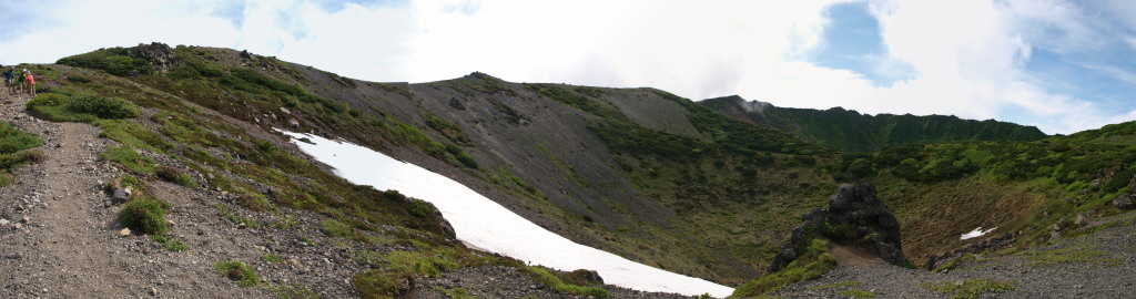 左が大火口(父釜)、右が母釜、子釜は手前の部分。