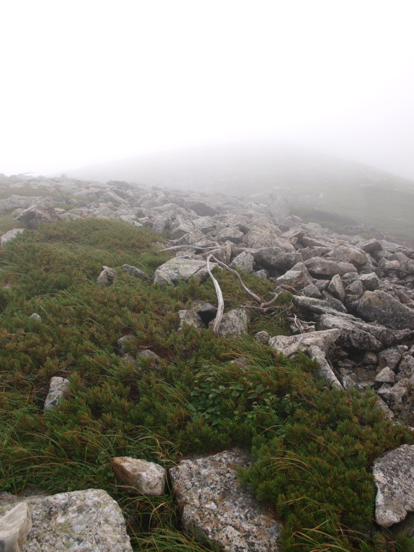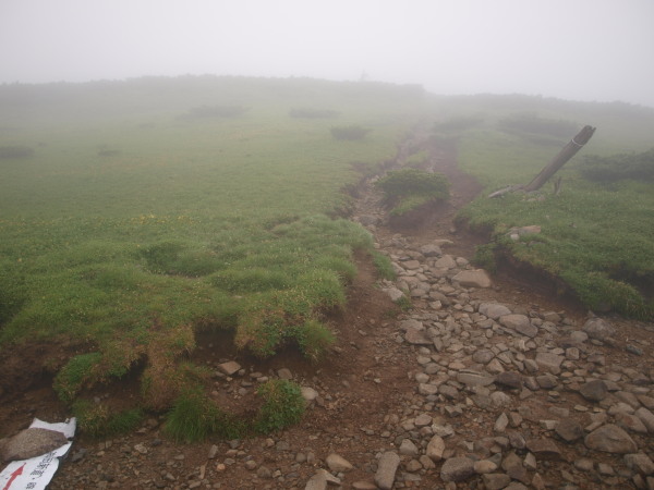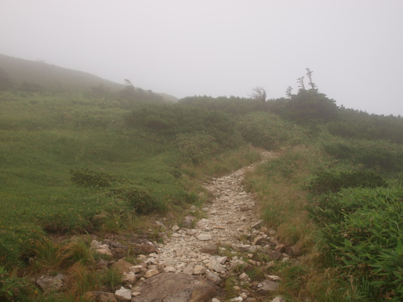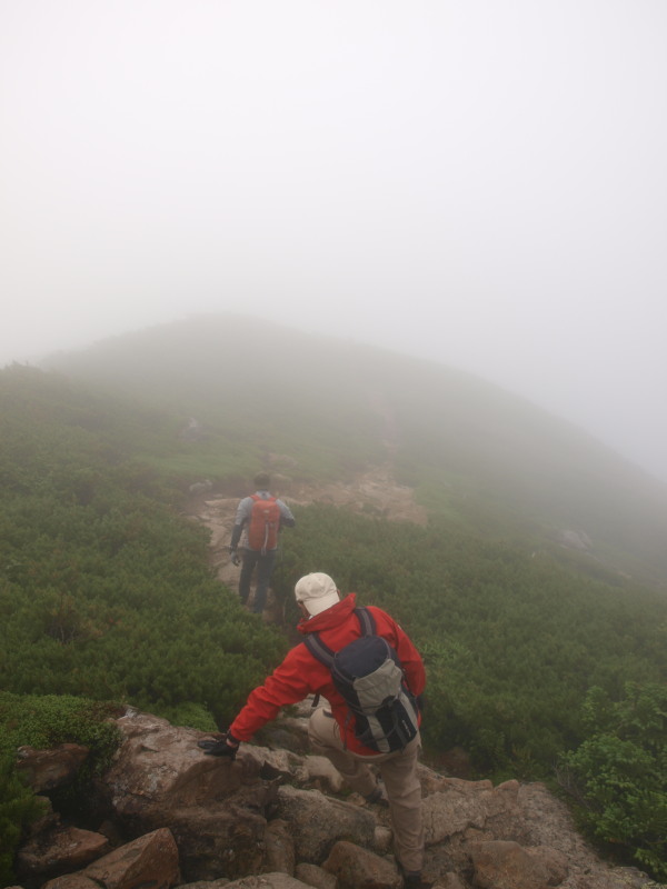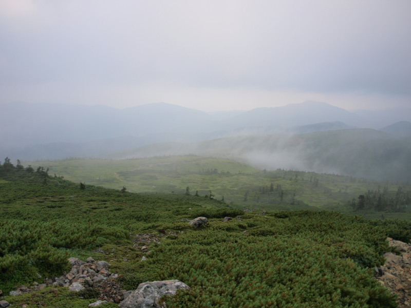 時折、ガスが流れて少しだけ展望が利くんですけどね。