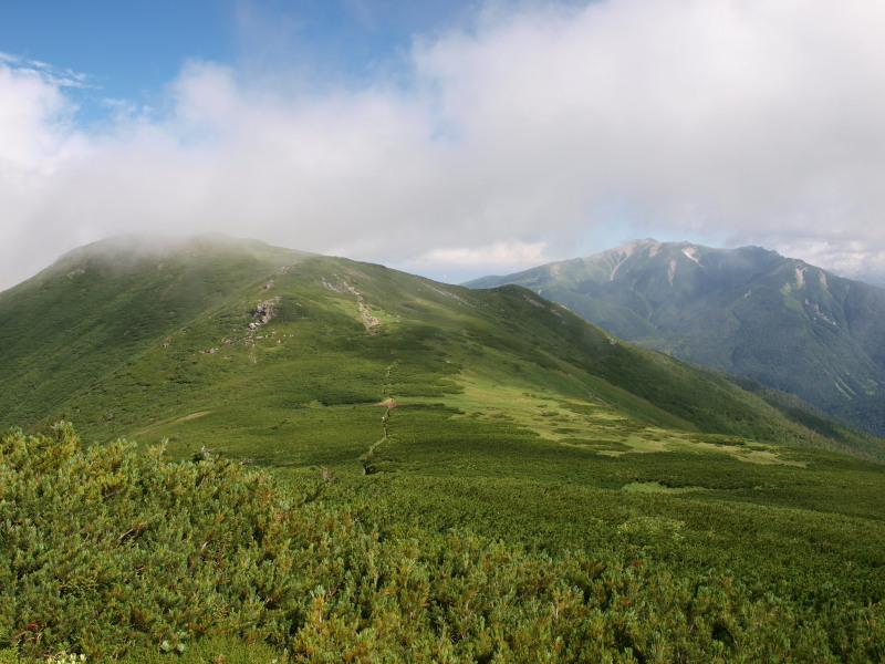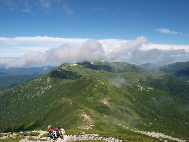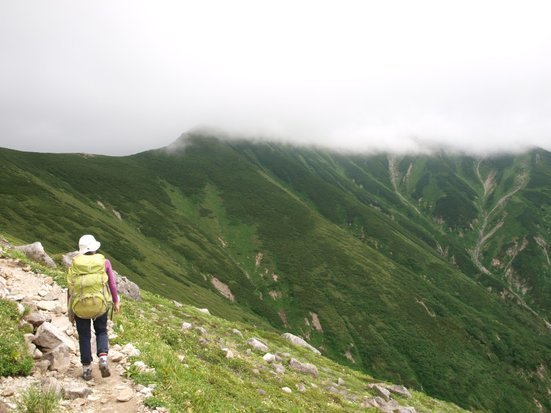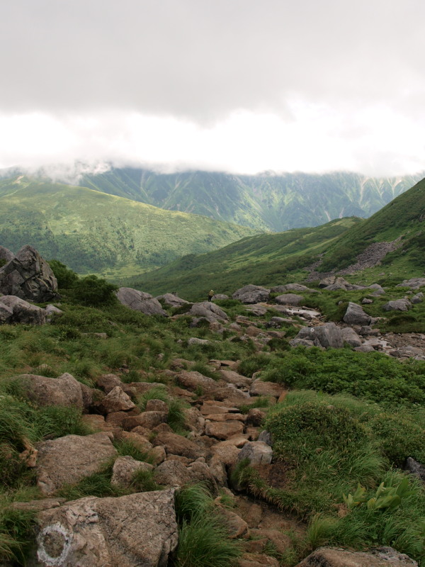 黒部五郎岳山頂でご挨拶したソロの方が前を歩いていました。