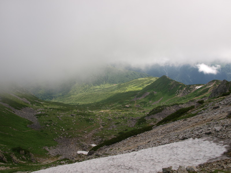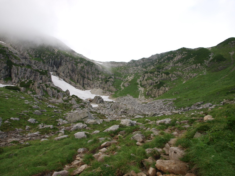 10:44 カールから見る黒部五郎岳はガスに包まれたままでした。