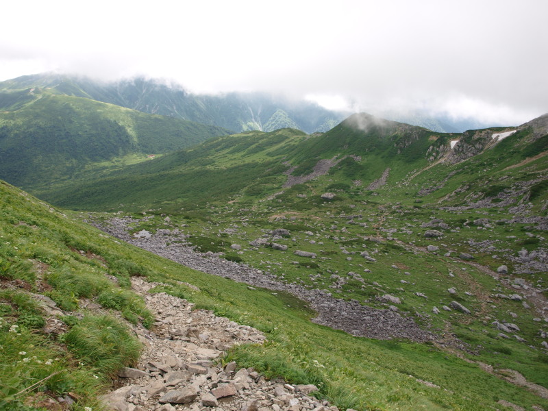 黒部五郎小舎まで稜線コースを歩きたかったけどガスガスなのでカールコースを選択。