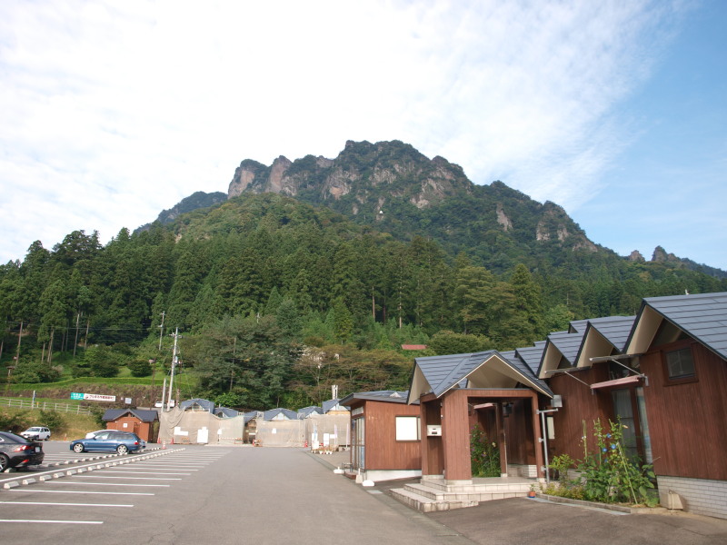 「道の駅みょうぎ」の駐車場に登山者は専用駐車場を利用してくださいの立て看板があります。