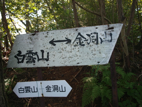 向かって右に進むと白雲山登山口、左へ進むと中間道です。
