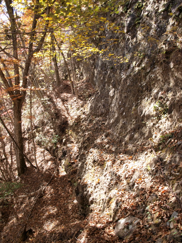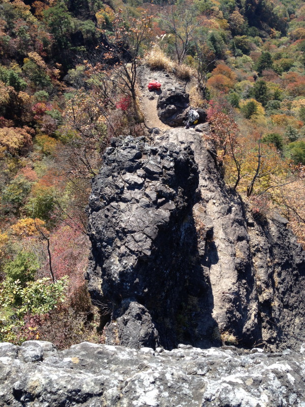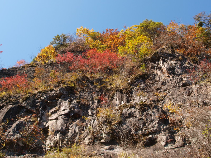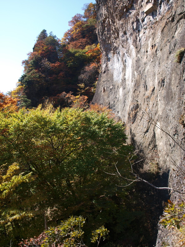 11:47 赤岩を見上げる。登るルートがあるみたいです。(要ザイル?)