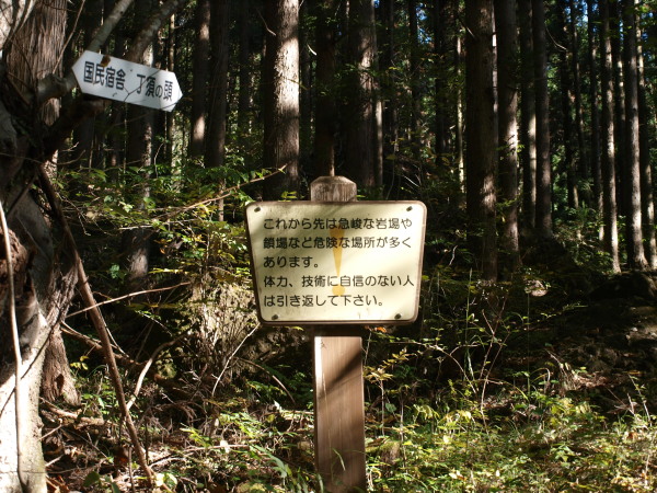 鍵沢コースは登山道崩落の為、閉鎖されていました。(2014.10.28現在)