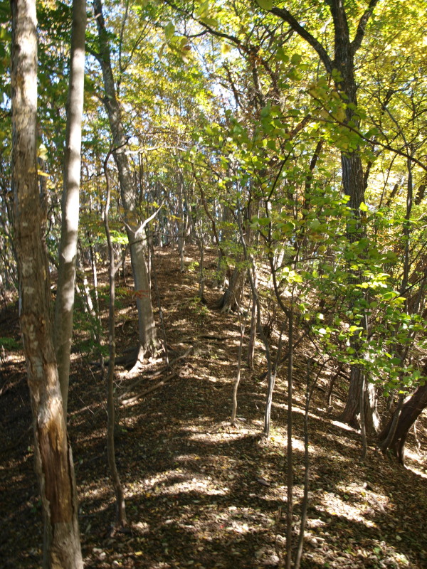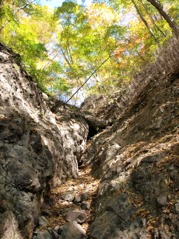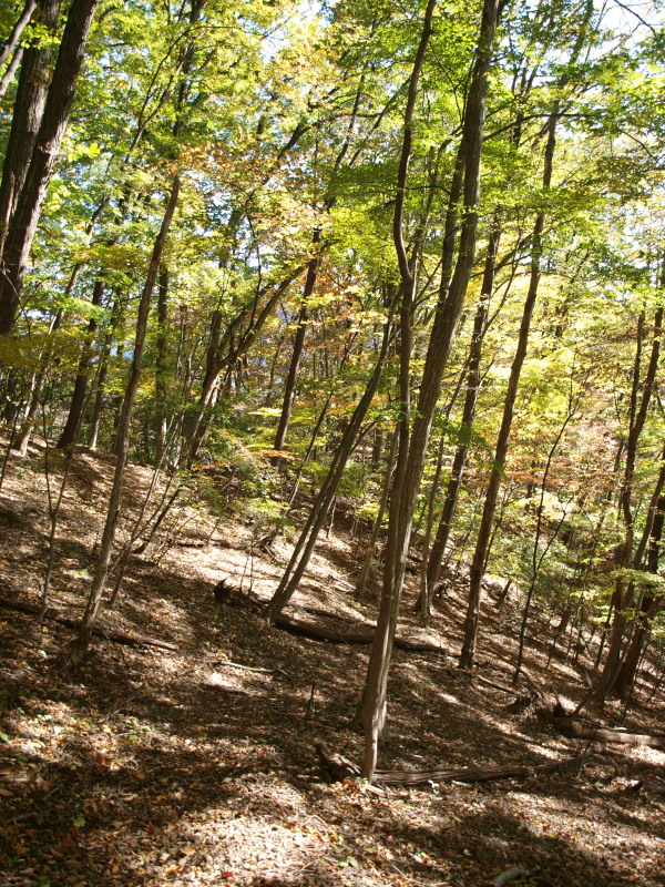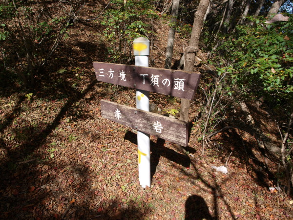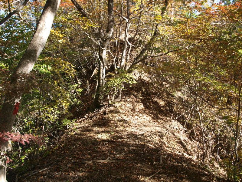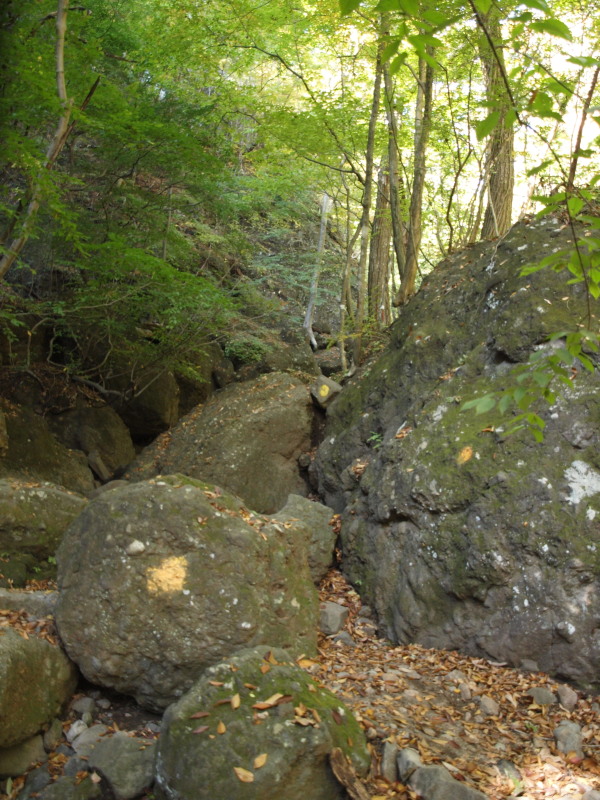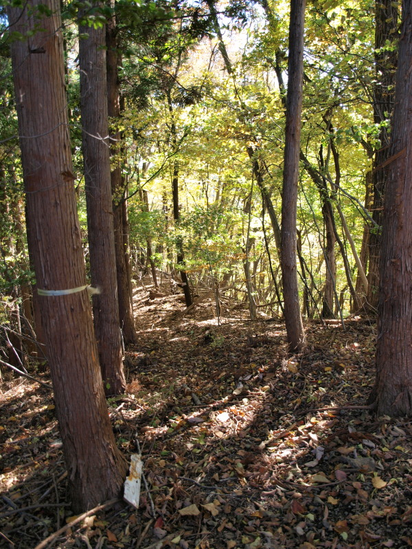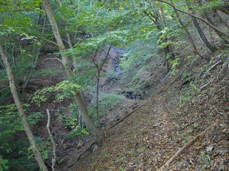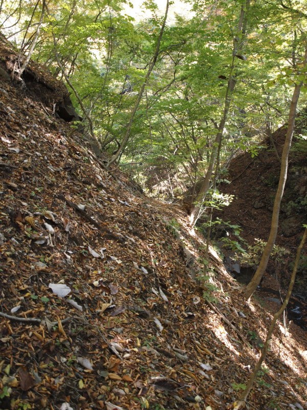 13:12 谷状の場所は落ち葉で踏み跡も無く、目印も少ない!