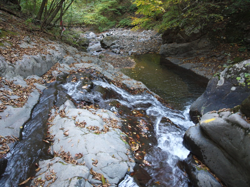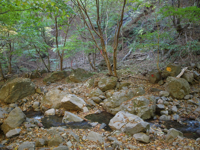 このあと沢まで下りたり、右岸へ渡り高巻きしたり、左岸を歩いたりです。