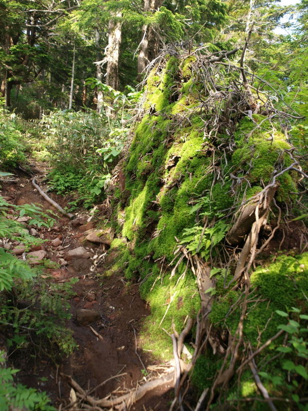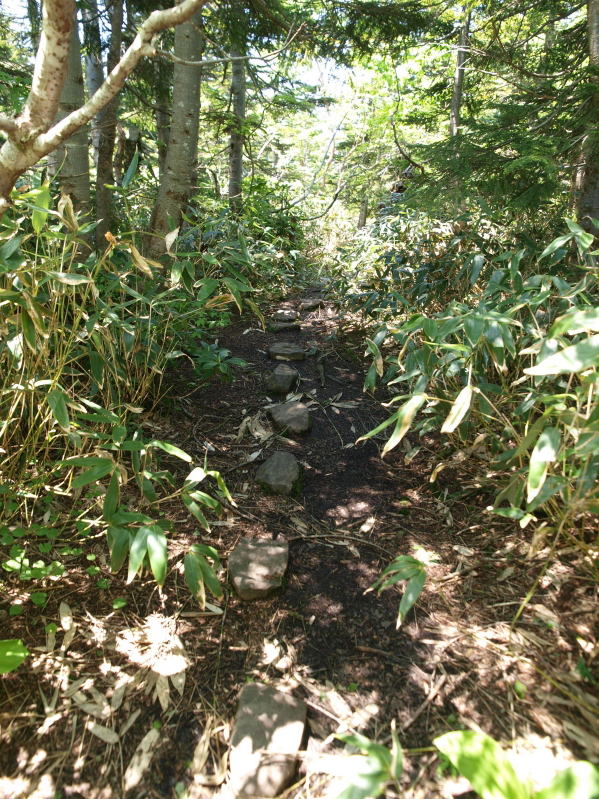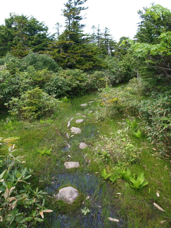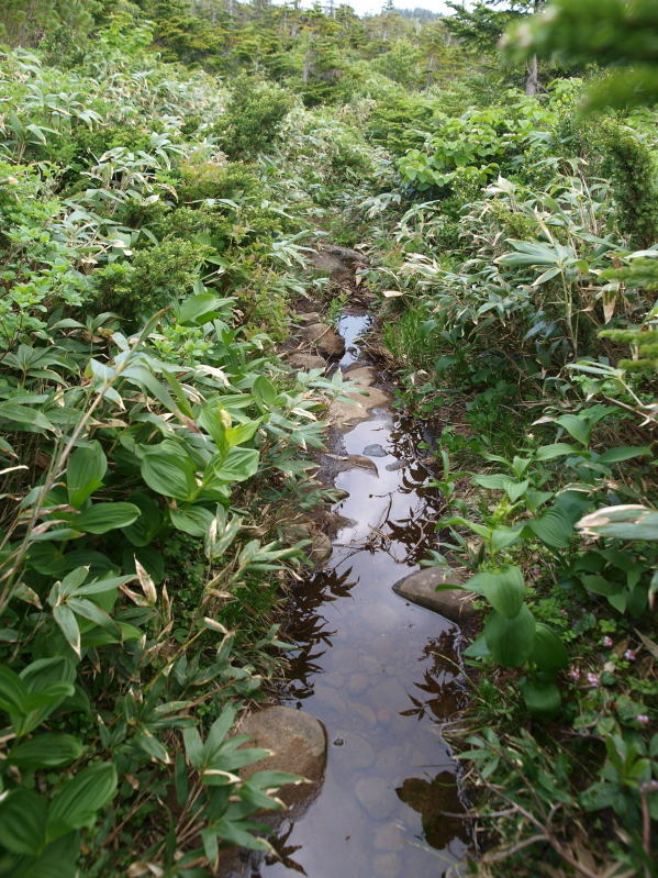 登山道は水の流れている所や泥濘の所、不明瞭な所と変化します。